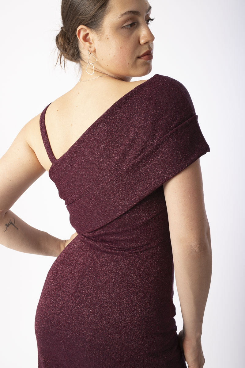 Unser atemberaubendes Abendkleid verleiht Ihnen einen souveränen und unvergesslichen Auftritt. Das extravagant drapierte Dekolleté und der hohe Beinschlitz kreieren eine asymmetrische Silhouette und setzen Ihre femininen Vorzüge gekonnt in Szene. Die seitliche Raffung kaschiert geschickt kleine Pölsterchen, während der bodenlange Schnitt die Figur optisch streckt. Und auch die Rückansicht sorgt mit ihrer Drapierung für das gewissen Etwas. Dabei kommen sowohl Figuren mit kleinerer als auch größerer Oberweite gut zur Geltung. CHIARA ist aus glitzerndem Viskose Jersey in satten Farben gefertigt und so gut wie knitterfrei.