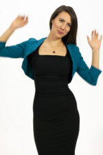 Der Bolero NELE ist wunderbar mit schmalen Jersey-Kleidern kombinierbar und kreiert durch seine schlichte Eleganz ein stilvolles Outfit.