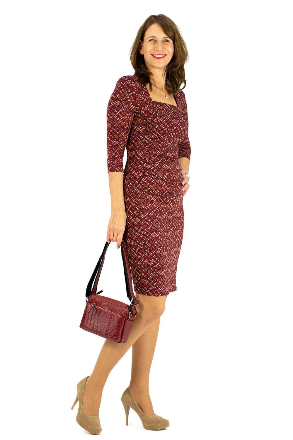 Unser schmales Basic-Kleid. Der Schnitt zeigt viel Liebe zum Detail. Die Raffung im Vorderteil kaschiert weibliche Rundungen perfekt. Die formgebenden Längsnähte strecken die Figur. Im Rücken gibt es in der Taille eine kleine Raffung. Die Passenabtrennung im oberen Bereich ist nicht nur dekorativ sondern auch perfekt platziert. Sie kaschiert die darunterlegende BH-Linie perfekt!